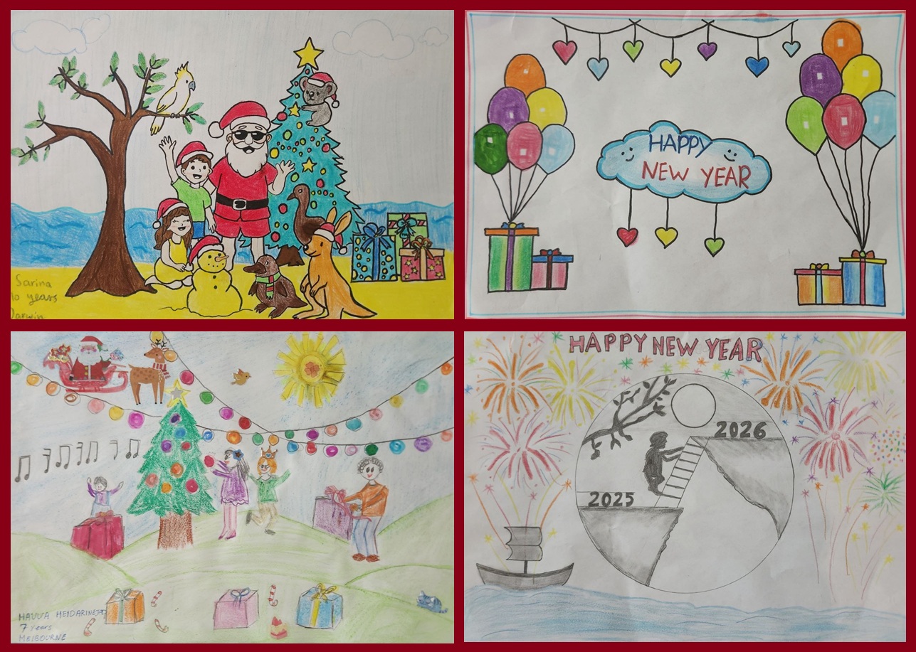 In this competition, children and teenagers across two different age groups expressed their interpretations and emotions surrounding the concept of “New Year in Australia” through colour and visual expression. The submitted artworks reflected cultural diversity, individual creativity, and the hopeful outlook of the younger generation toward the beginning of the new year within Australia’s multicultural society.
